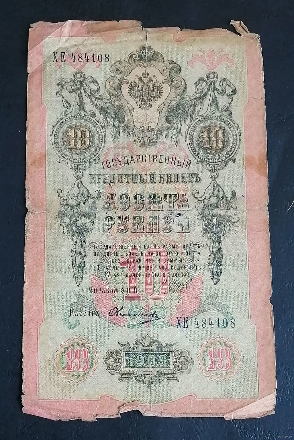 10 рублей 1909 Шипов Овчинников ХЕ 484108 #0048