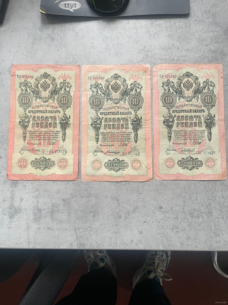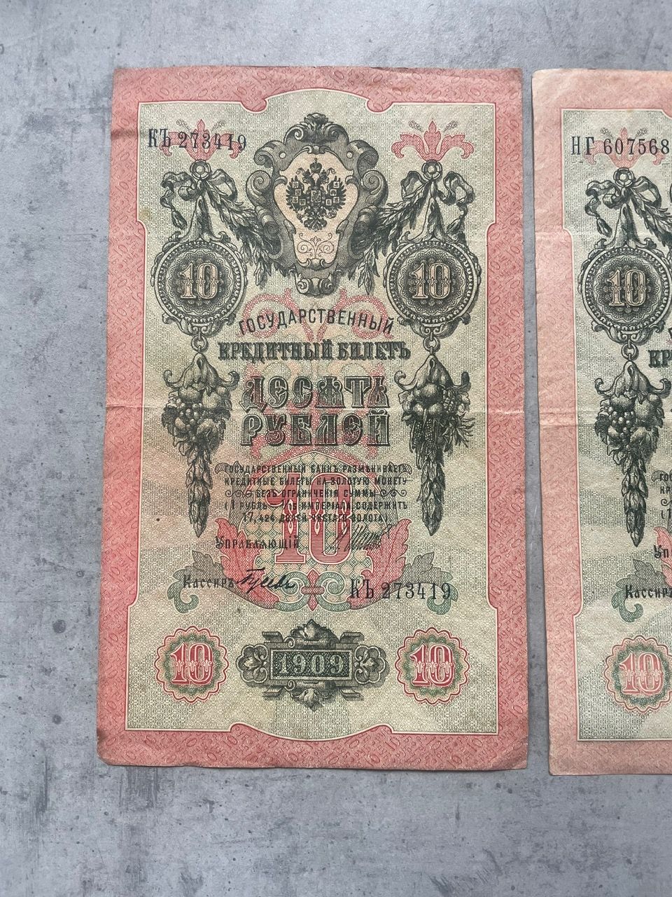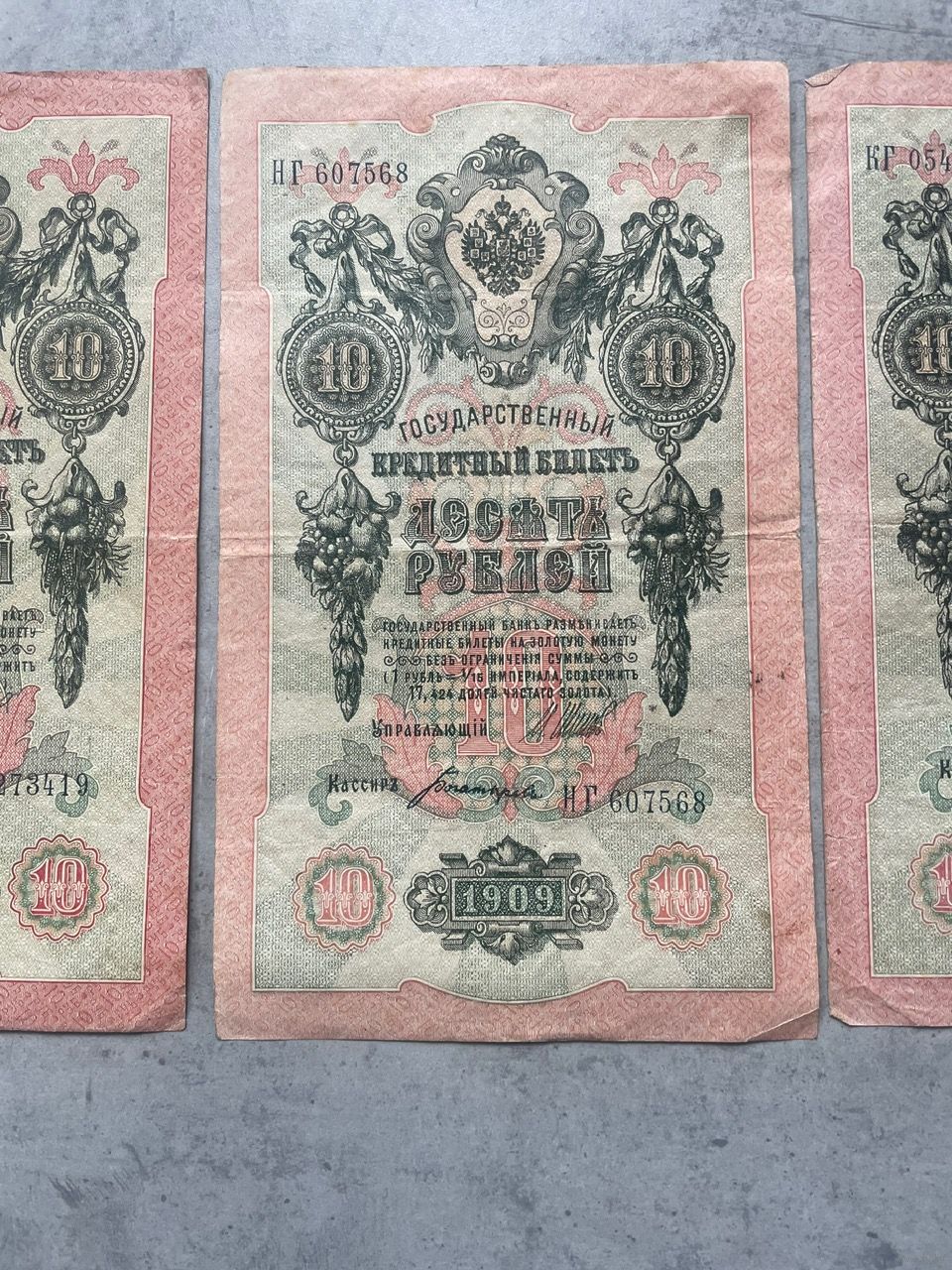 10 рублей 1909 Шипов плюс разные кассиры 3шт. лотом
