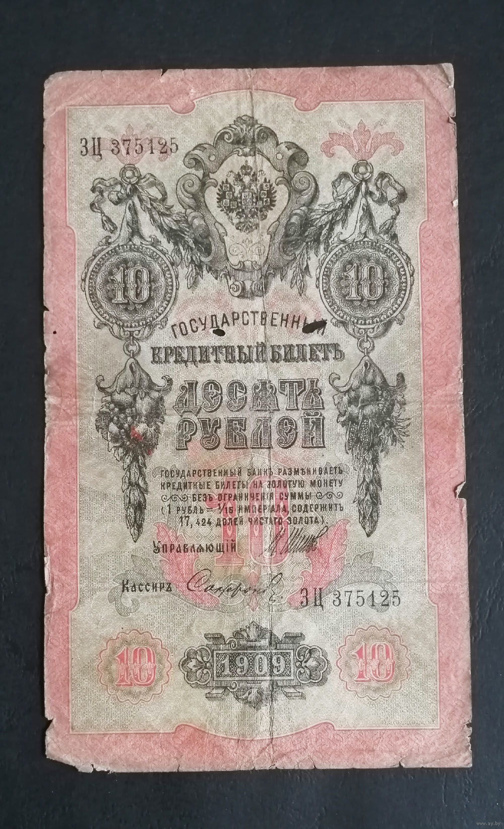 10 рублей 1909 Шипов Софронов ЗЦ 375125 #0166
