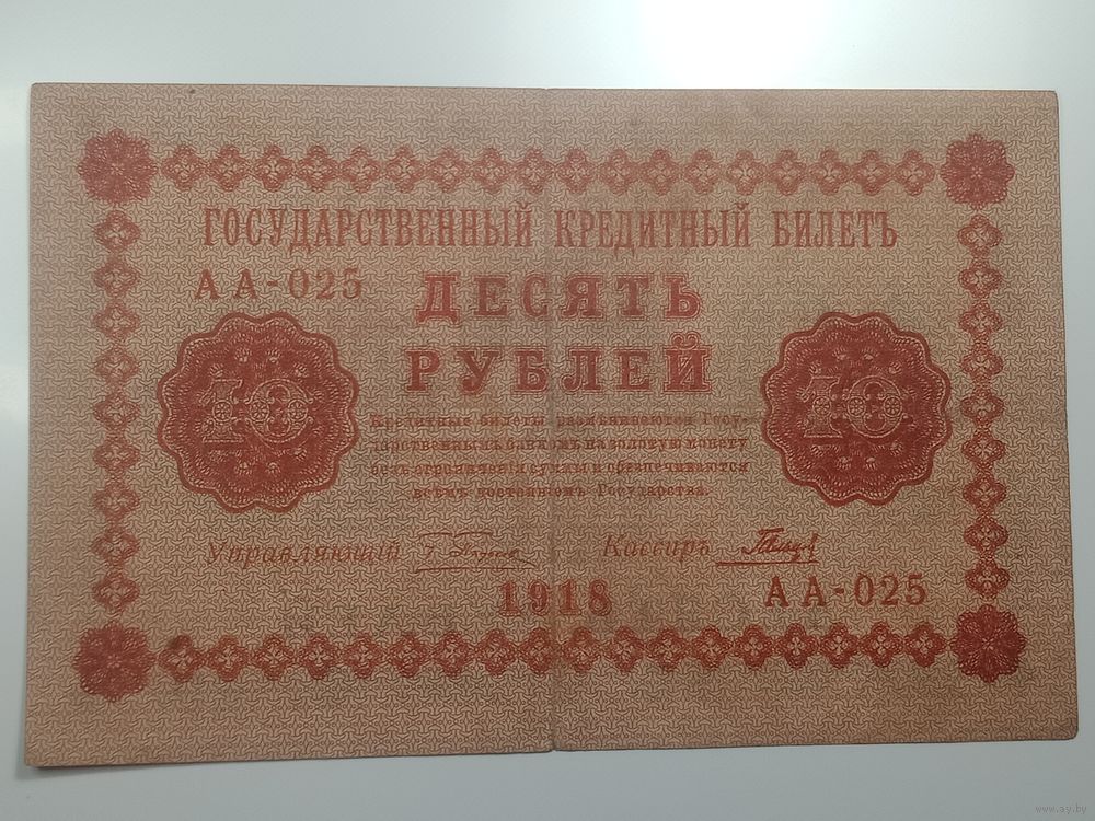 10 рублей 1918 года , Кассир Гальцев , АА - 025 , Пензенская