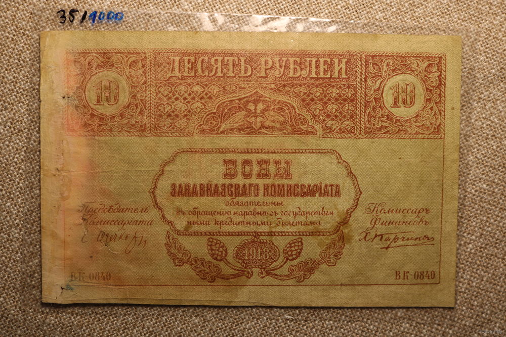 10 рублей 1918 Закавказского комиссариата