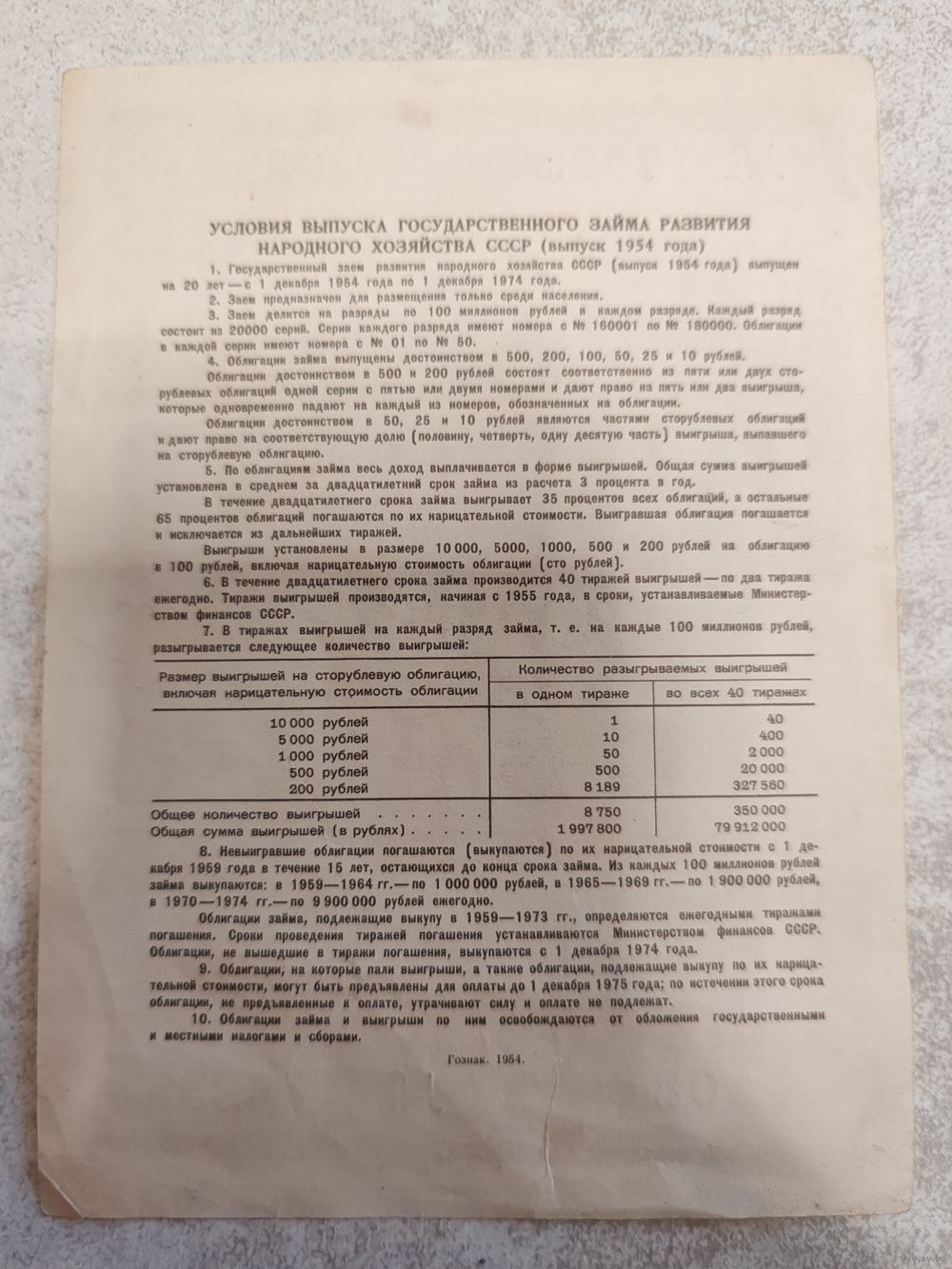 10 рублей 1954 г. СССР (Облигация). СМОТРИТЕ ДР. МОИ ЛОТЫ. Большая распродажа!