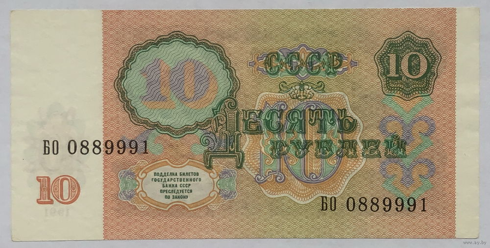 10 рублей 1991 серия БО
