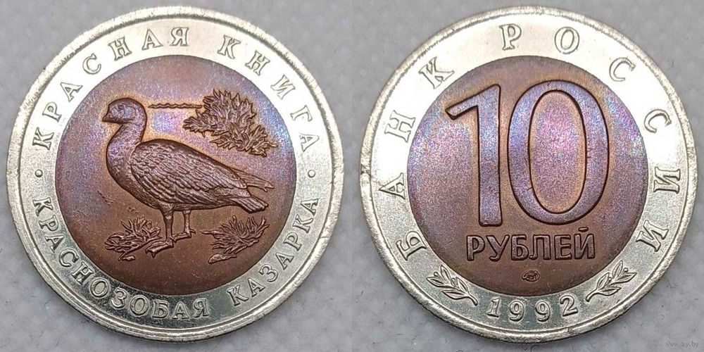 10 рублей 1992 г UNC Россия(РФ) Краснозобая казарка, Красная книга