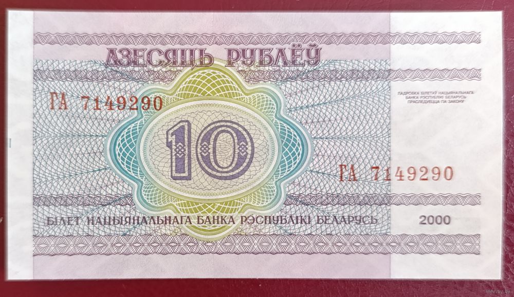 10 рублей 2000 года, серия ГА - UNC