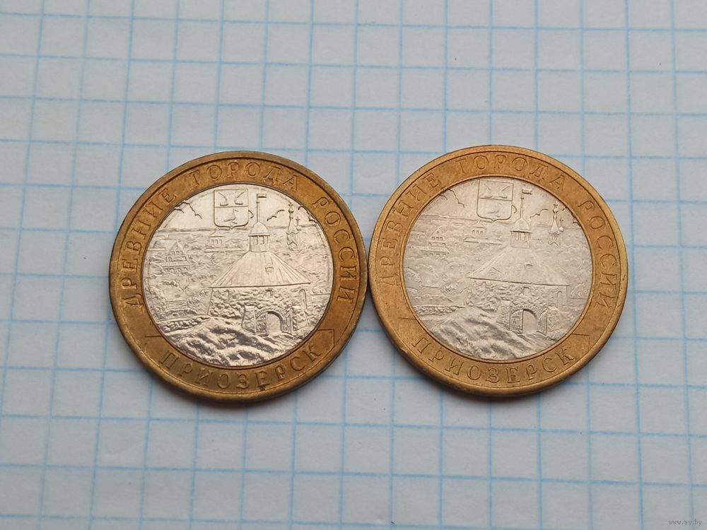10 рублей 2008 Приозерск ММД , СПМД , 2 монеты .