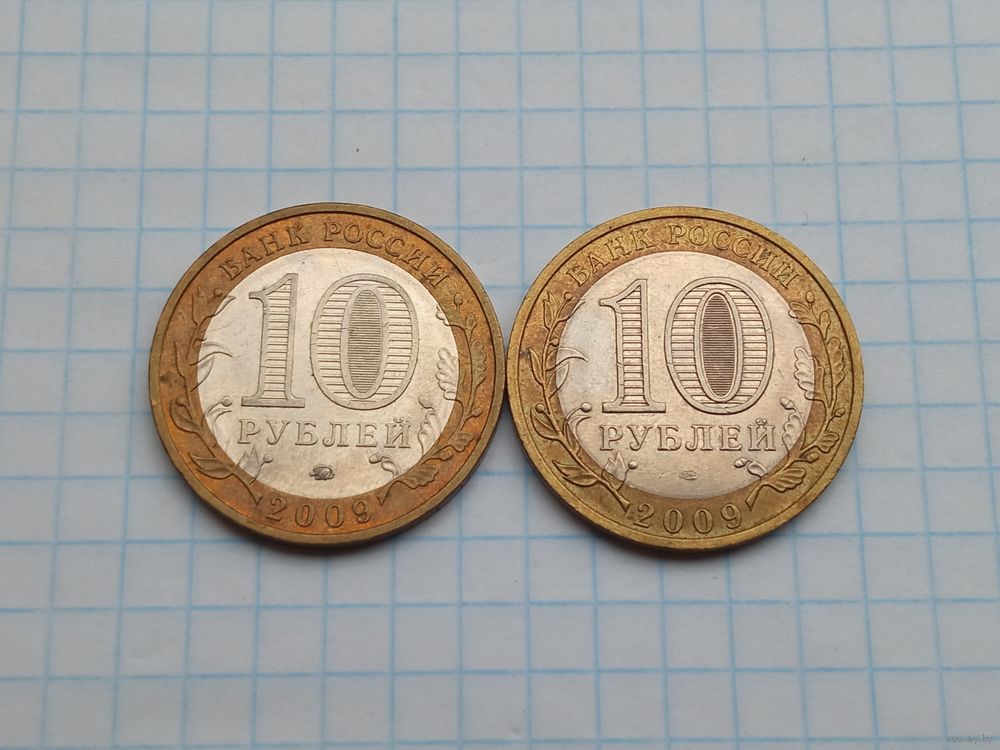 10 рублей 2009 Калуга ММД , СПМД , 2 монеты .