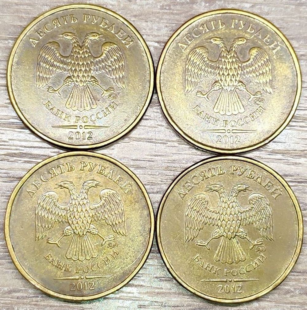 - 10 рублей 2012 ММД - 4шт. У одной слабый чекан аверса ДЕСЯТЬ РУБЛЕЙ