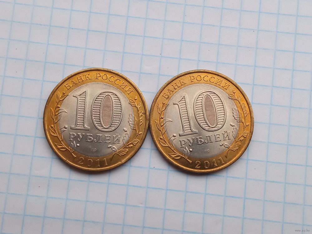 10 рублей 2011 Древние города России , 2 монеты .