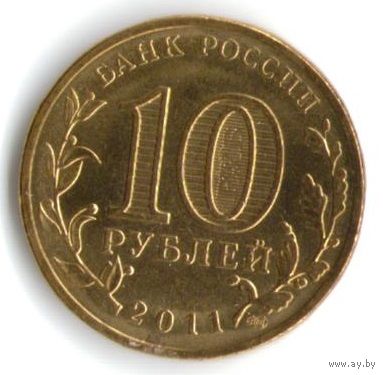 10 рублей 2011 год ГВС г. Ельня _состояние аUNC/UNC