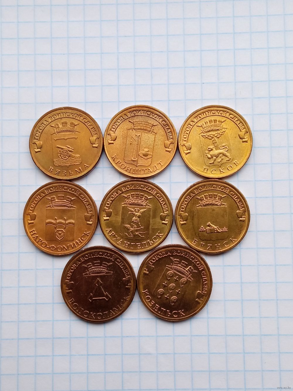 10 рублей 2013 Города воинской славы , 8 монет .