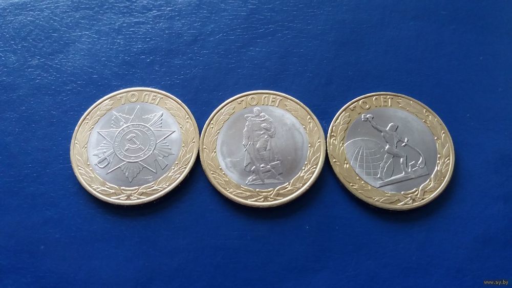 10 рублей 2015 год 70 лет Победы СПМД (В лоте 3 монеты)