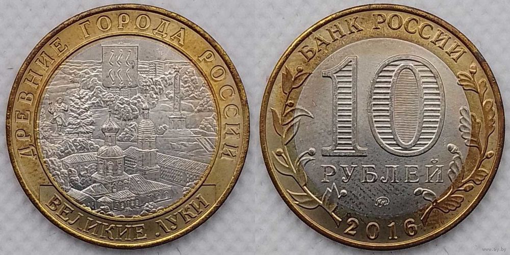 10 рублей 2016 aUNC Великие Луки Россия(РФ)