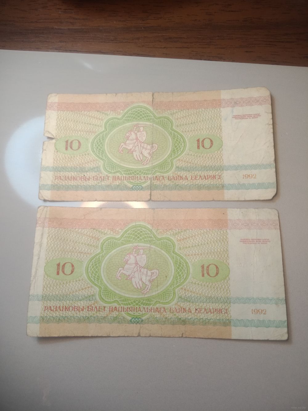 10 рублей Беларусь 1992 года , серия АА , АЛ . С рубля