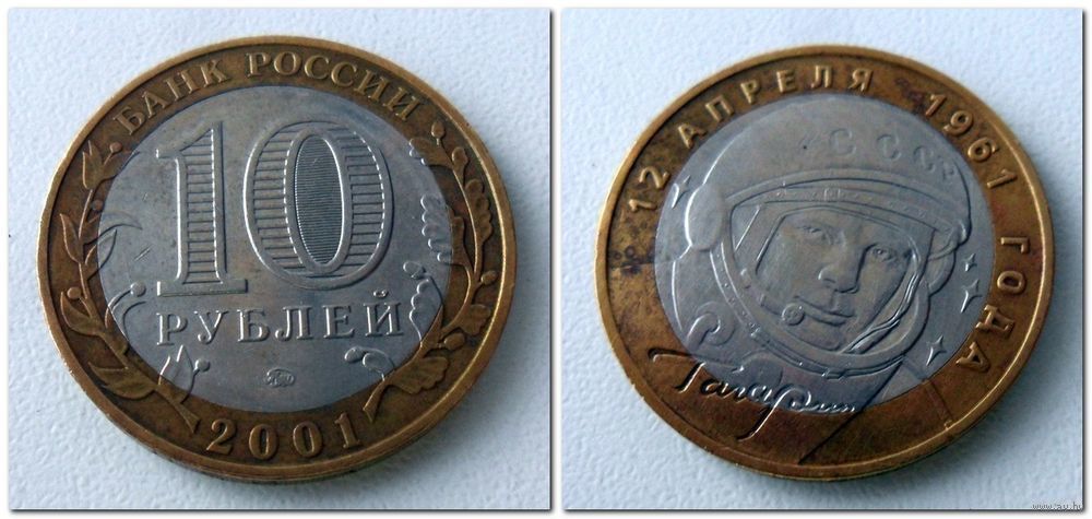 10 рублей Россия, ГАГАРИН ММД, 2001 год