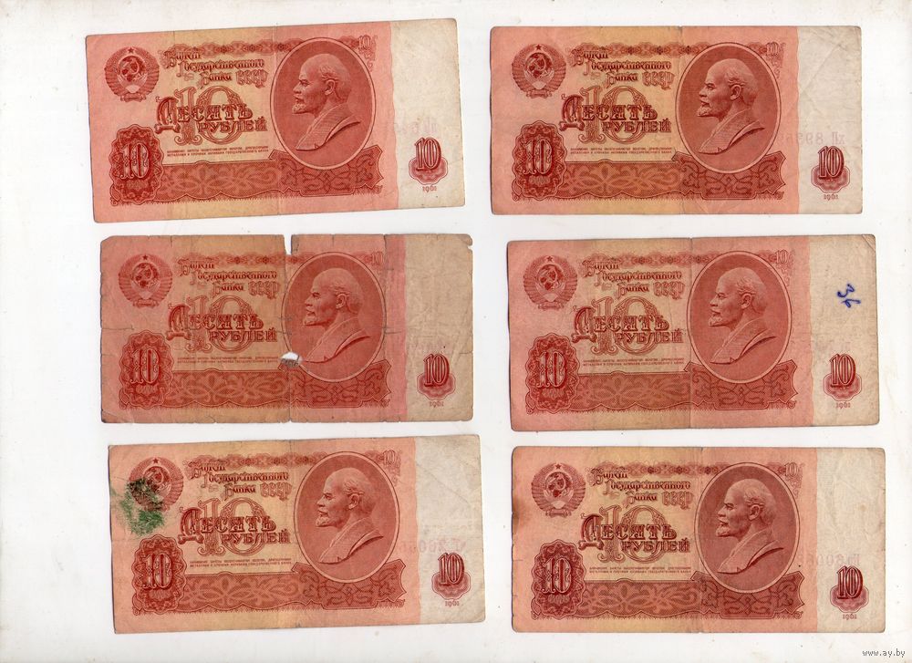 10 рублей СССР. 6 штук. (14)
