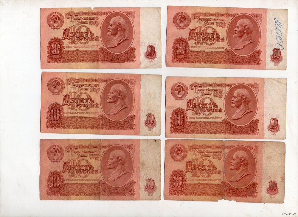 10 рублей СССР. 6 штук. (16)