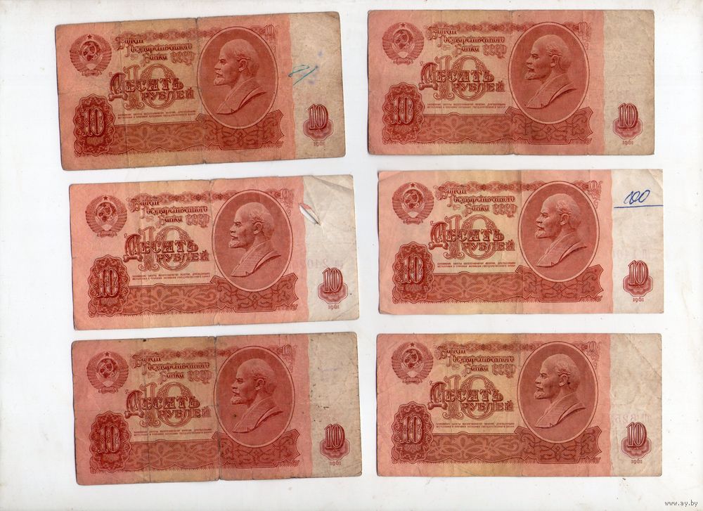 10 рублей СССР. 6 штук. (17)