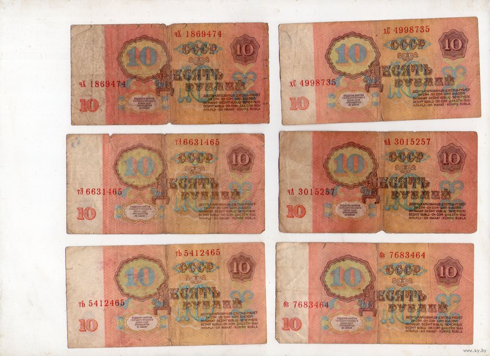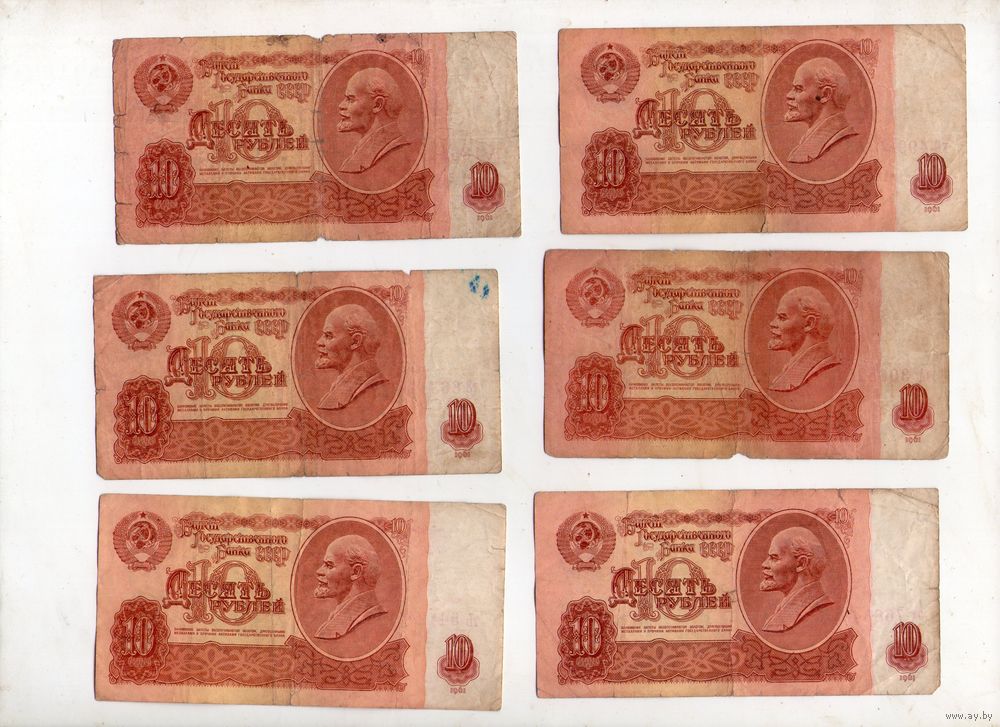10 рублей СССР. 6 штук. (18)