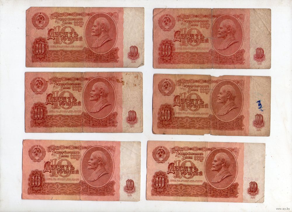 10 рублей СССР. 6 штук. (28)