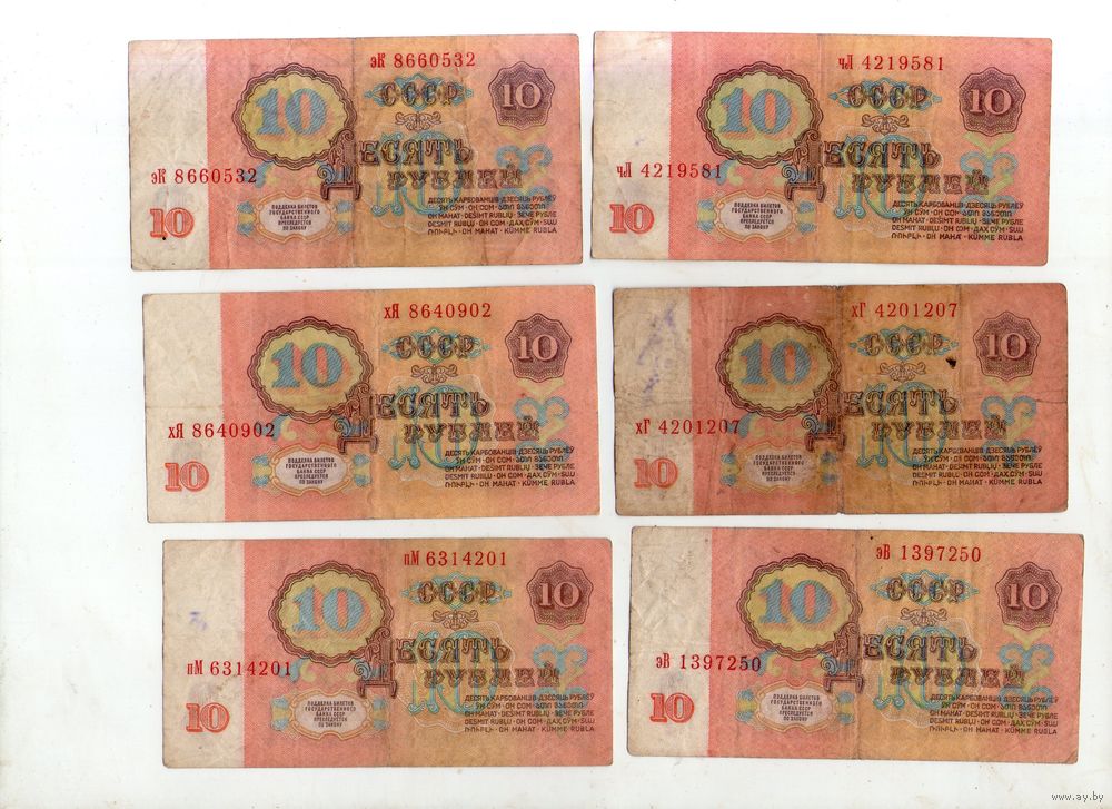 10 рублей СССР. 6 штук. (3)