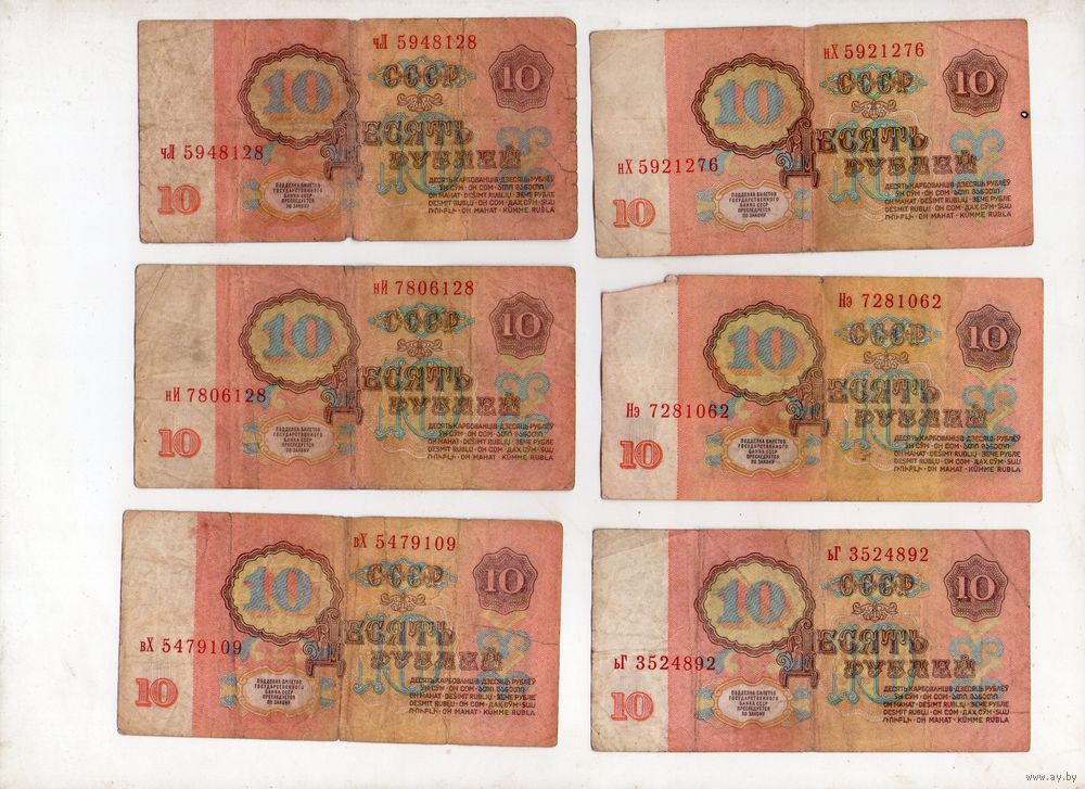 10 рублей СССР. 6 штук. (30)