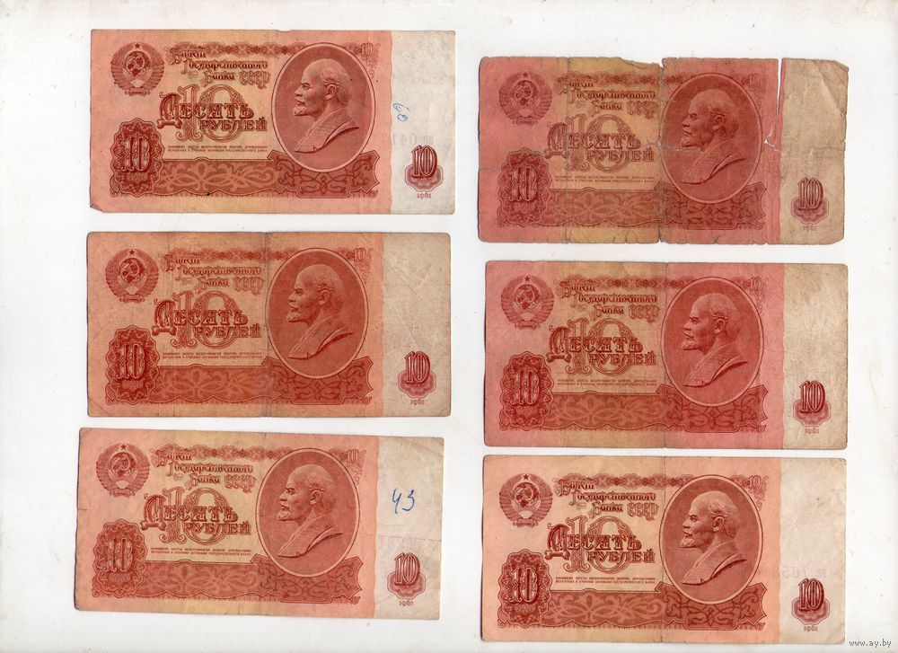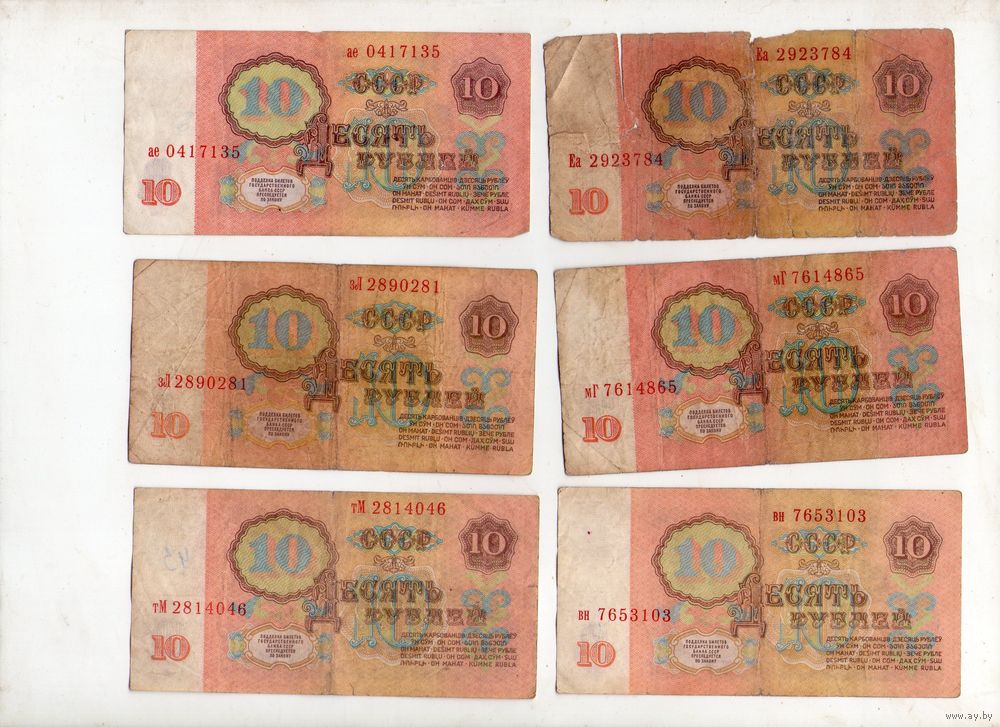 10 рублей СССР. 6 штук. (37)