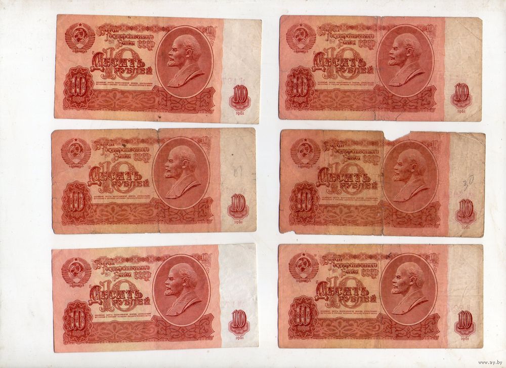 10 рублей СССР. 6 штук. (38)