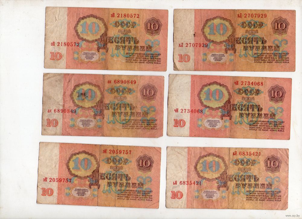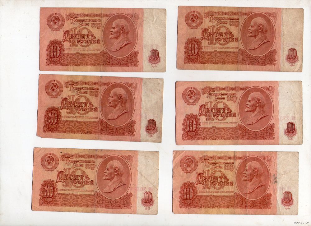 10 рублей СССР. 6 штук. (44)
