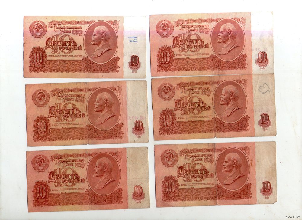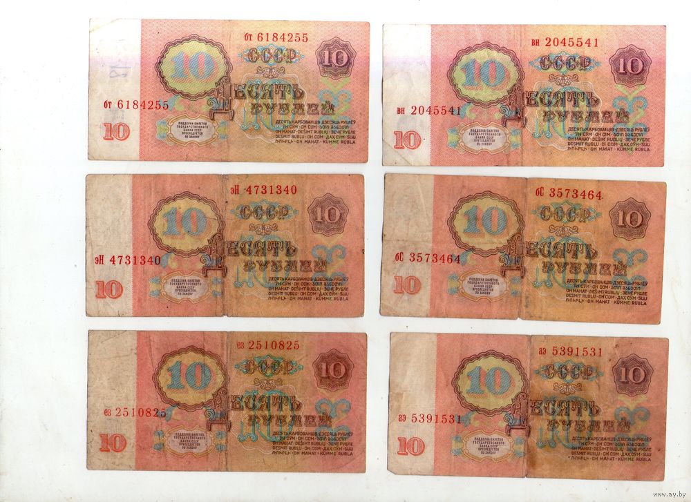 10 рублей СССР. 6 штук. (5)