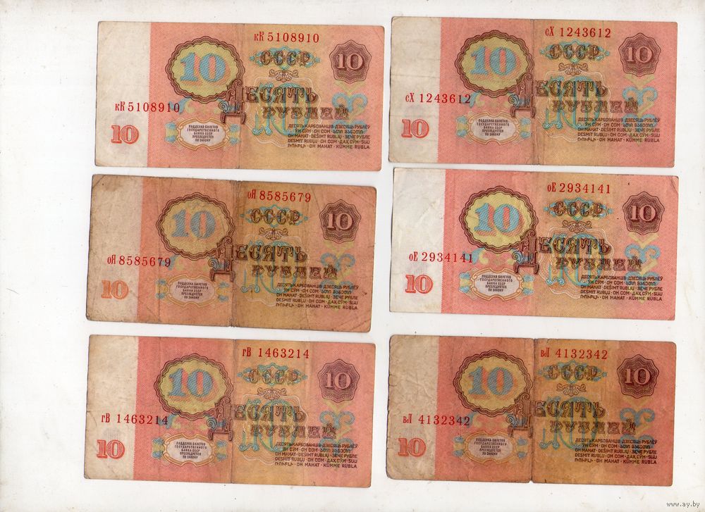 10 рублей СССР. 6 штук. (50)