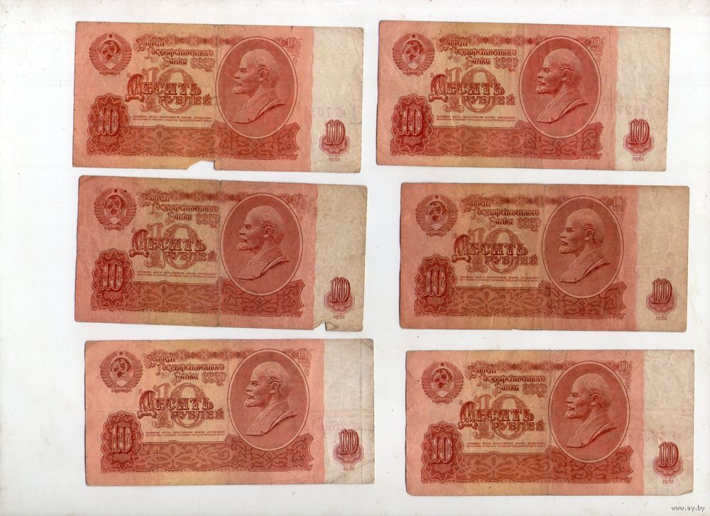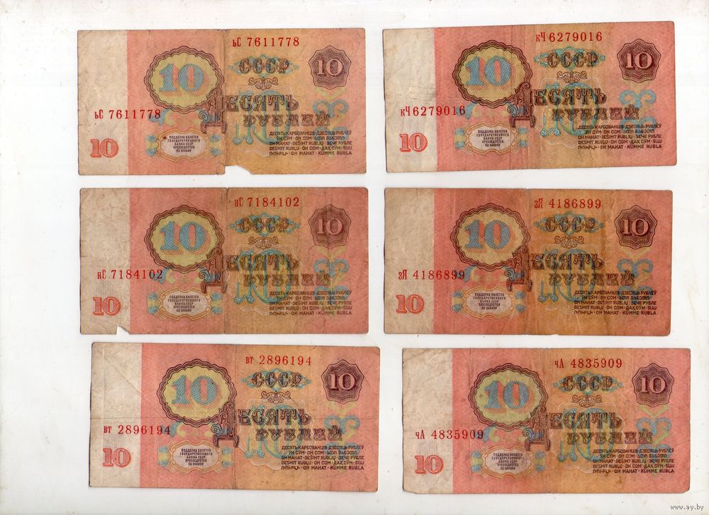 10 рублей СССР. 6 штук.