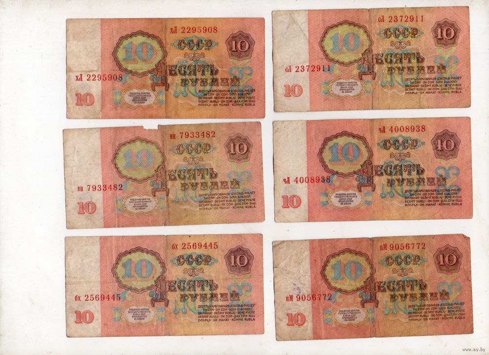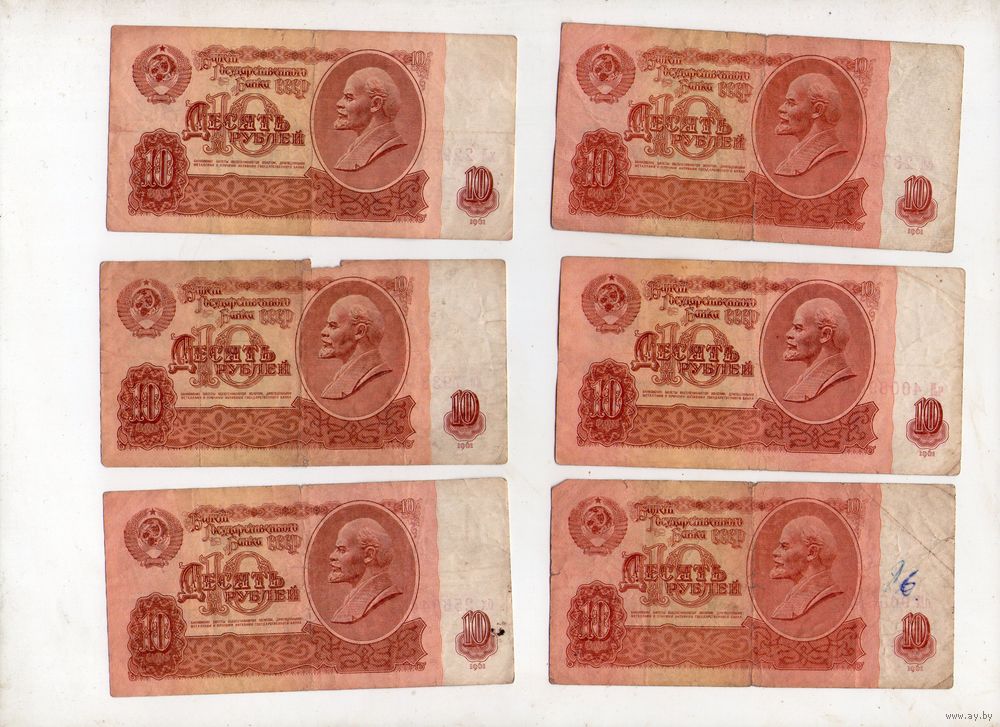 10 рублей СССР. 6 штук. (61)