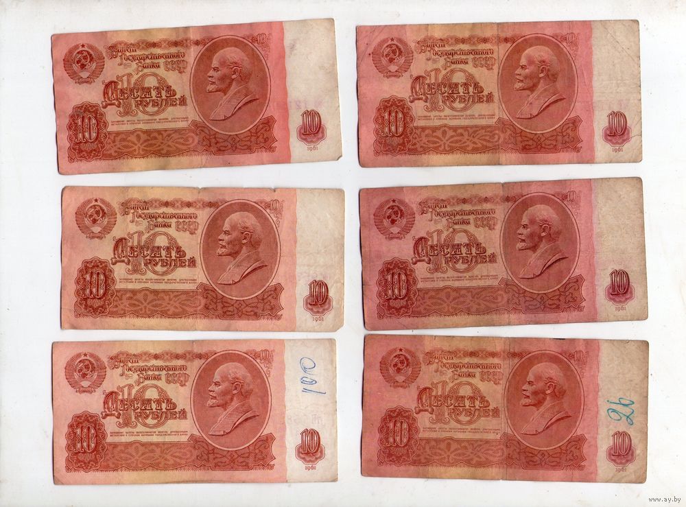 10 рублей СССР. 6 штук. (72)