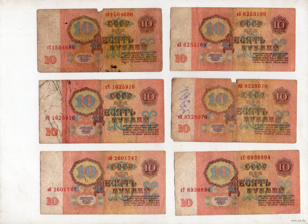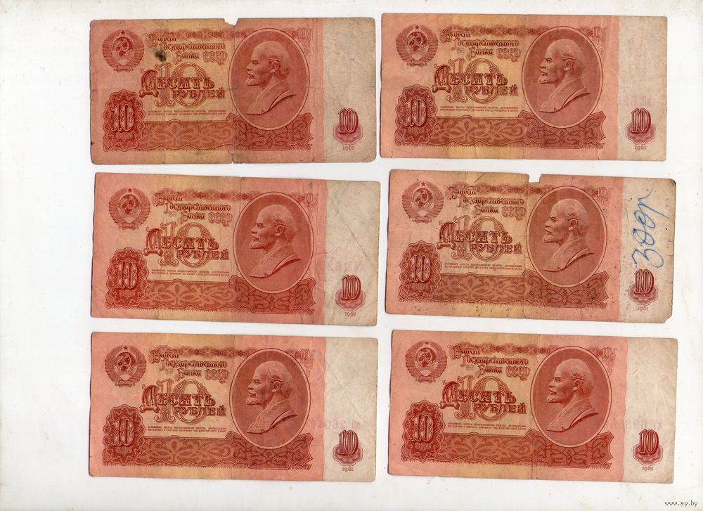 10 рублей СССР. 6 штук. (9)