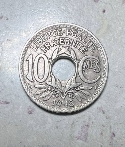 10 сантимов Франции 1918 года. Свобода. Равенство. Братство.