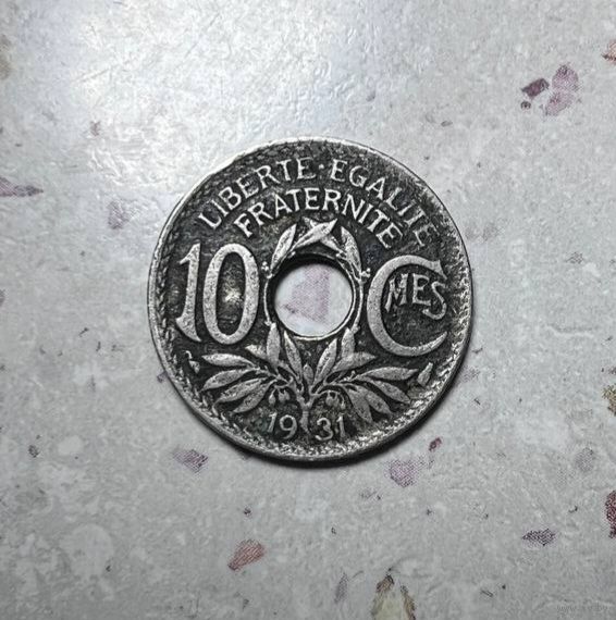 10 сантимов Франции 1931 года. Свобода. Равенство. Братство.