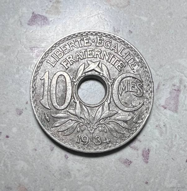 10 сантимов Франции 1934 года. Свобода. Равенство. Братство.