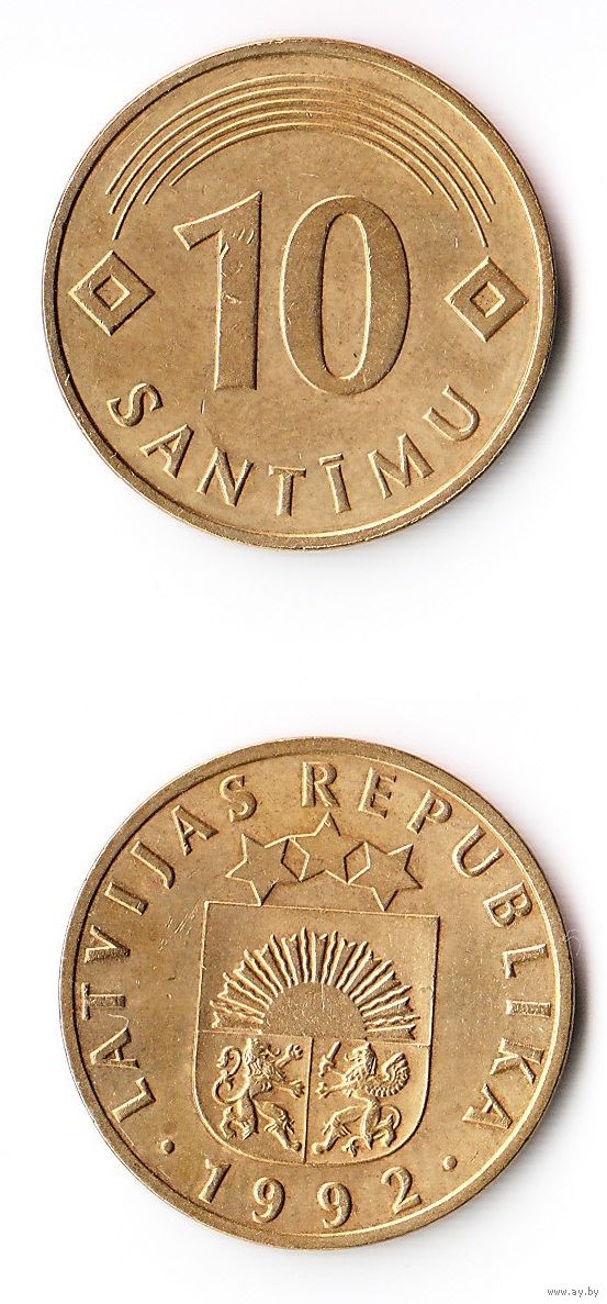 10 сантимов Латвия 1992 год
