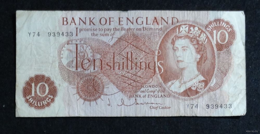 10 шиллингов образца 1962-66 года. Тип 373b. Подпись J. Q. Hollom.