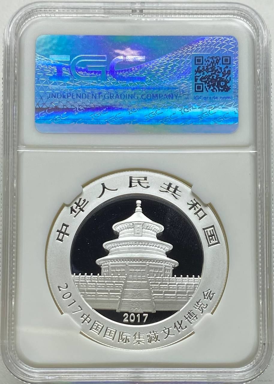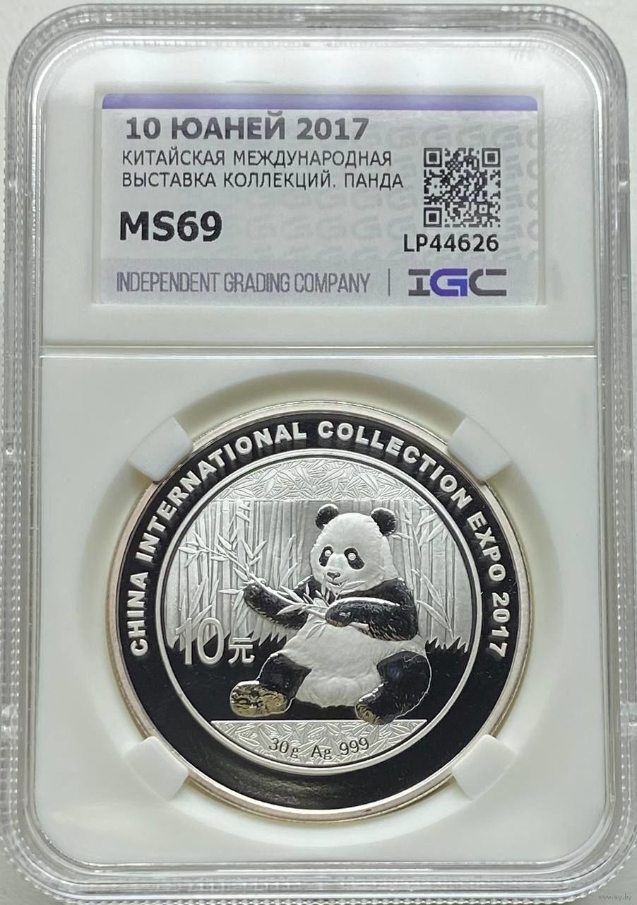 10 юаней 2017 панда Китай ms 69. 30г серебро 999 пробы