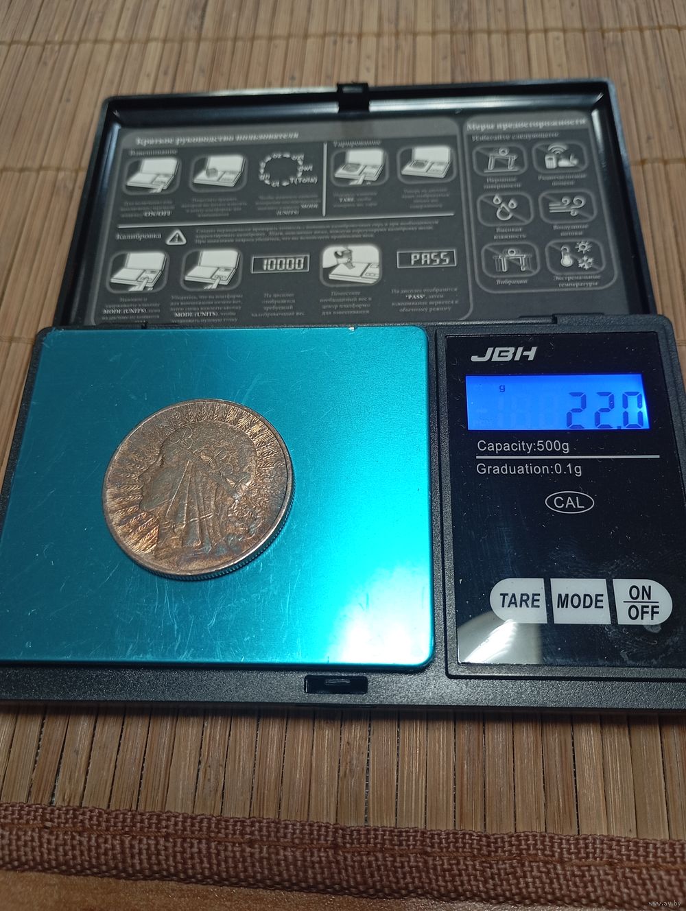| Вес монеты | 22 г |