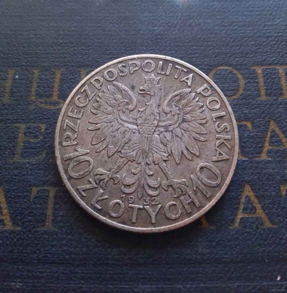 10 злотых 1932 Польша Ядвига Без отметки монетного двора #04-A01 Монета в родной патине!