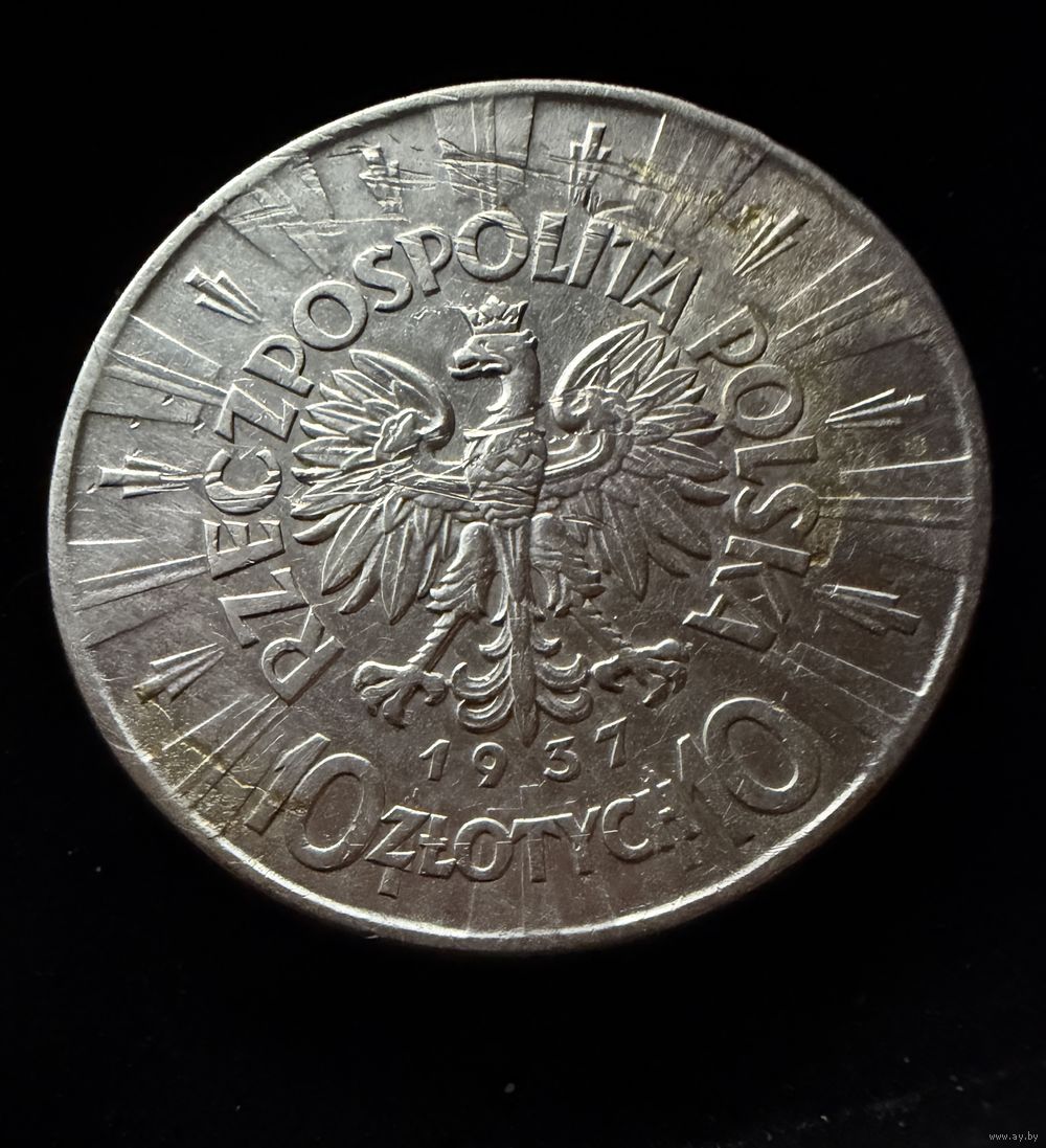 10 злотых 1937 г. Юзеф Пилсудский. Польша. Серебро