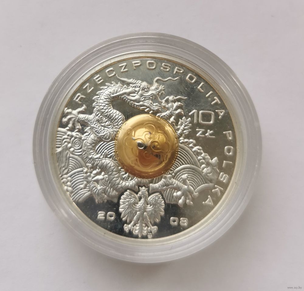 10 злотых 2008 Олимпиада Пекин 2008 (Золотой сердечник). С рубля.