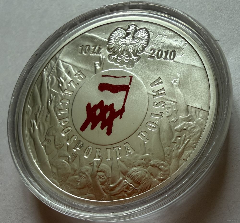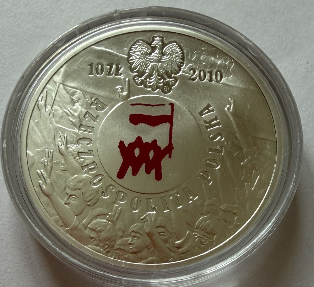 10 злотых 2010 г. 30 лет Политическому Кризису. Польша. ПРУФ !!! СЕРЕБРО.
