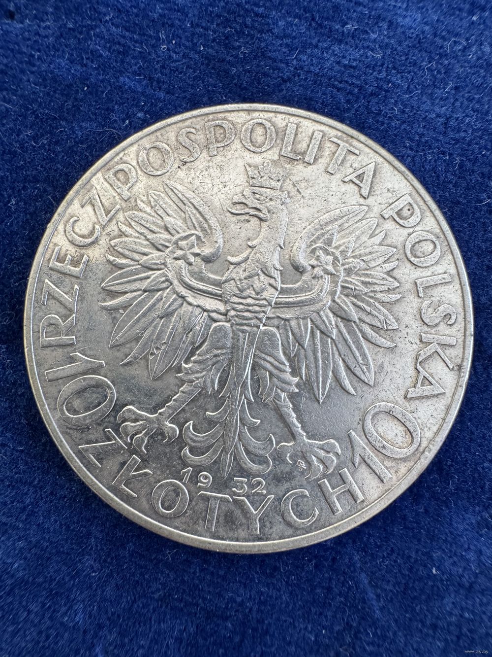 10 злотых Польша Янина 1932 год, клеймо под лапой