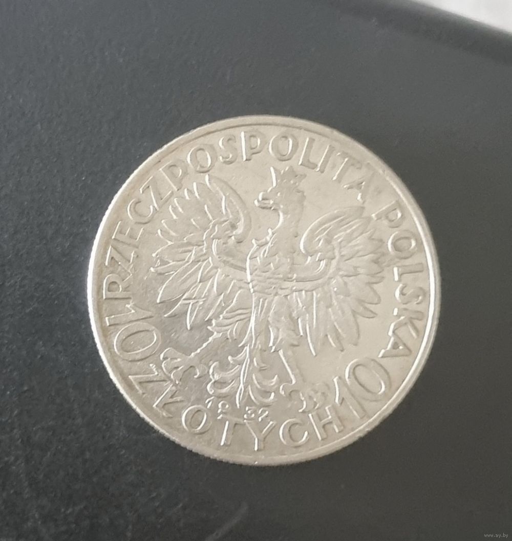 10 злотых РП 1932 года. Разновидность без знака монетного двора под лапой орла. Возможен обмен.