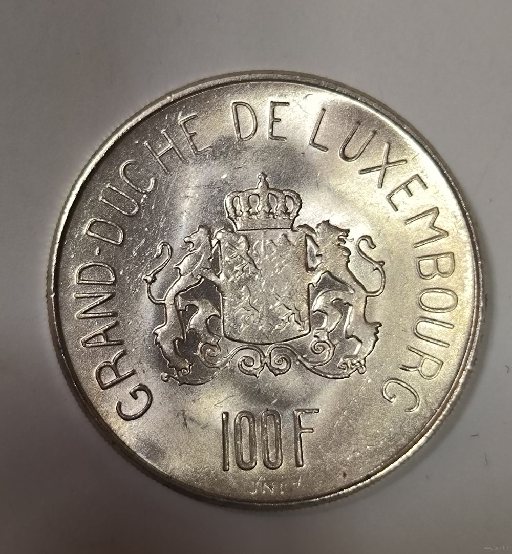 100 франков 1963 Люксембург - сахарная! Яркий блеск! Крупное серебро!