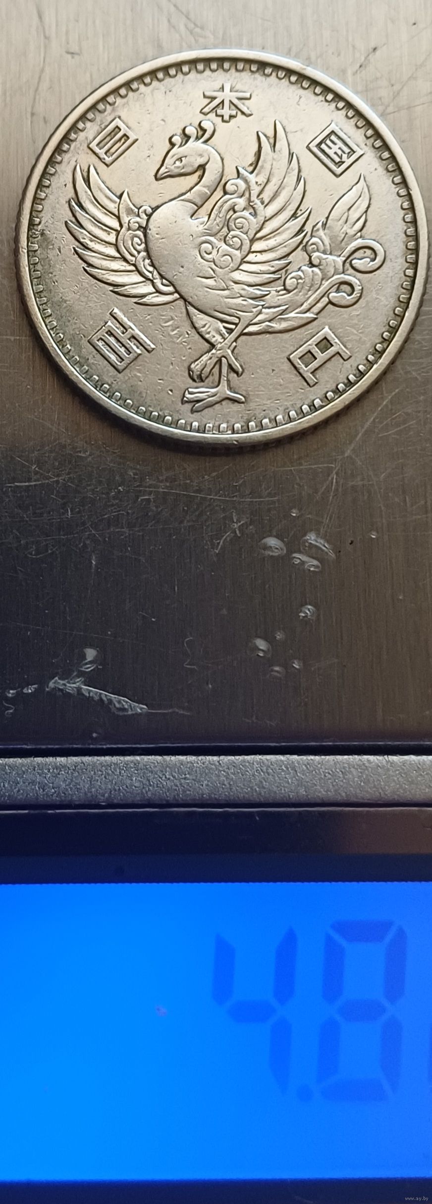 100 йен. 1958г(33-ый год эпохи Сёва).600 пр., серебра. Япония.Феникс (Бессмертная птица, возрождающаяся из пепла).Не чищена.